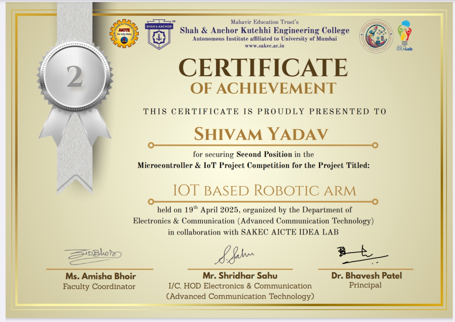 Certified in Web Development, Cybersecurity, and AutoCAD from prestigious institutions including Cisco, Infosys, and Spoken Tutorial.
